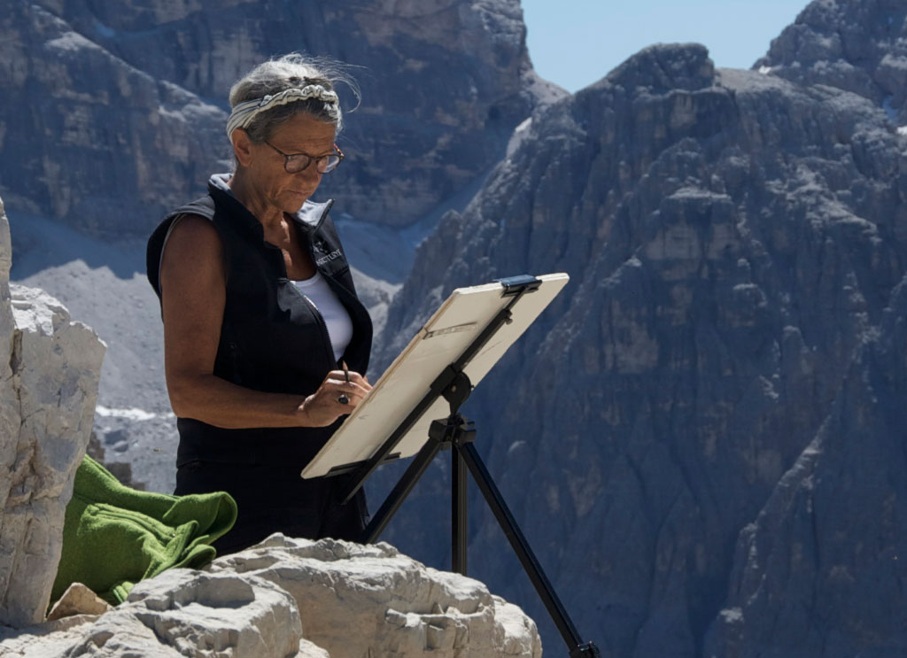 She started painting primarily watercolors later in her life. Her love of mountains has made them the subject of her work.